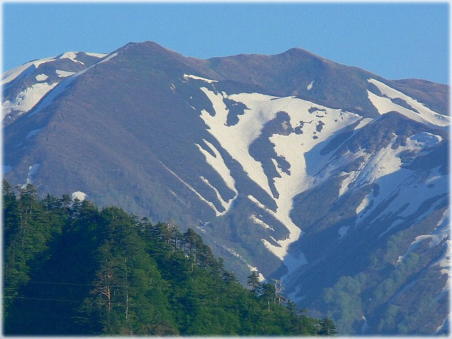 飯豊連峰、杁差岳(新潟県関川村 立烏帽子より)