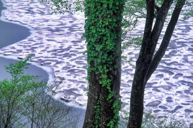 大鳥池の雪解けは例年五月の半ば頃である。この時期はまだ林道の除雪も確認