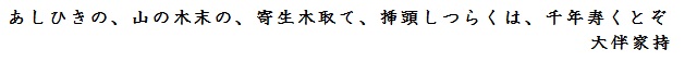 あしひきの、山の木末(こぬれ)の、寄生木(ほよ)取て、挿頭(かざ)しつらくは、千年(ちとせ)寿(ほ)くとぞ
