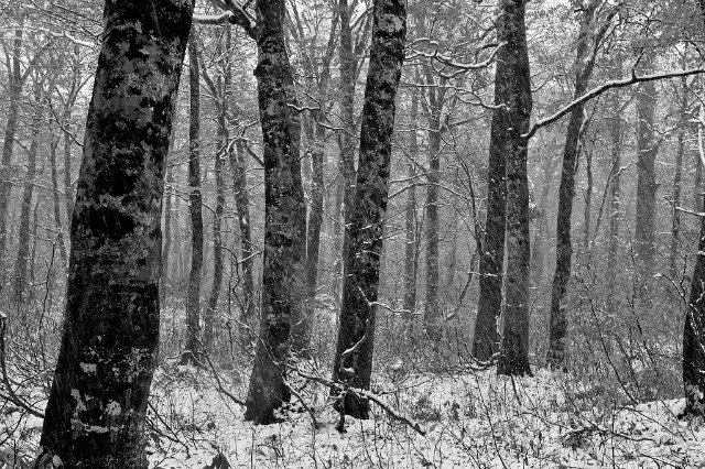 静謐だったブナ林に細雪がせわしく吹きつけていたが、