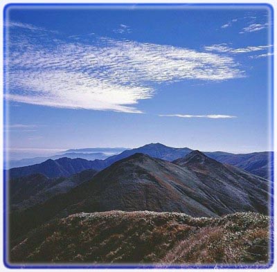 「初秋ただよう鯖雲の飯豊主稜」 飯豊連峰北股岳より